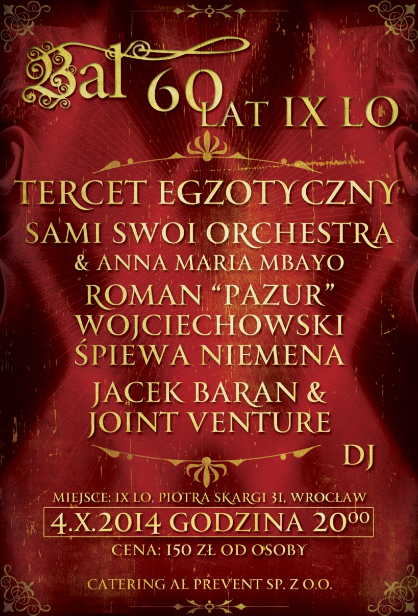 Uroczyste obchody 60-lecia Szkoły: Liceum Ogólnokształcącego Nr IX im. Juliusza Słowackiego oraz 15-lecia Stowarzyszenia Absolwentów i Sympatyków LO Nr IX im. Juliusza Słowackiego we Wrocławiu zaplanowano na 3 i 4 października.